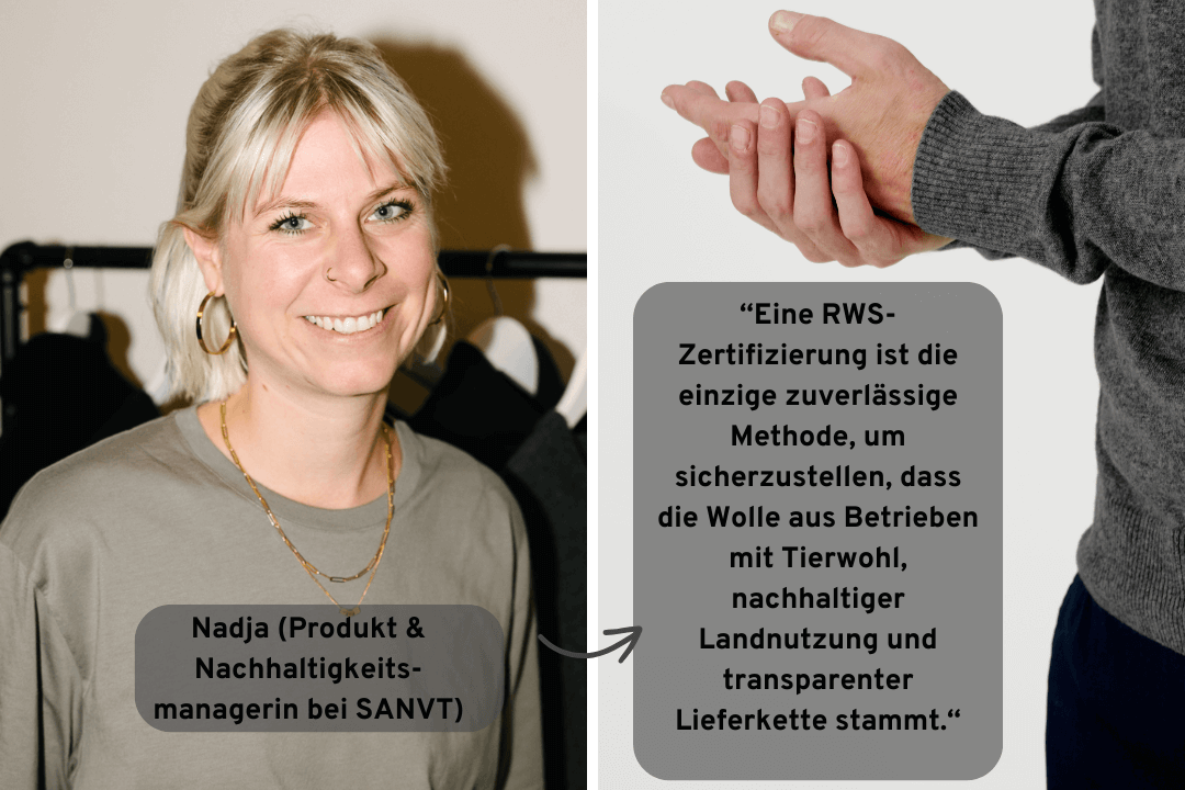 Natürlich wird dieser „Claim“ oft auch nur als Marketing-Spruch verwendet. Wer wirklich sicher gehen möchte, dass es sich um einen ethisch vertretbaren Artikel handelt, sollte auf das Siegel „RWS“ bei Firmen achten. Der Responsible Wool Standard (RWS) ist ein international anerkannter Standard, der sicherstellt, dass Wolle ethisch und nachhaltig produziert wird. Dabei müssen alle Akteur:innen entlang der Produktionskette – vom Bauern bis zum Händler bzw. Verkäufer - den Vorgaben des Standards nachkommen, um ihn zu erhalten. Vergeben wird der Siegel vom Textile Exchange, einer internationalen Non-Profit Organisation und wird regelmäßig durch unabhängige, akkreditierte Zertifizierungsstellen überprüft.