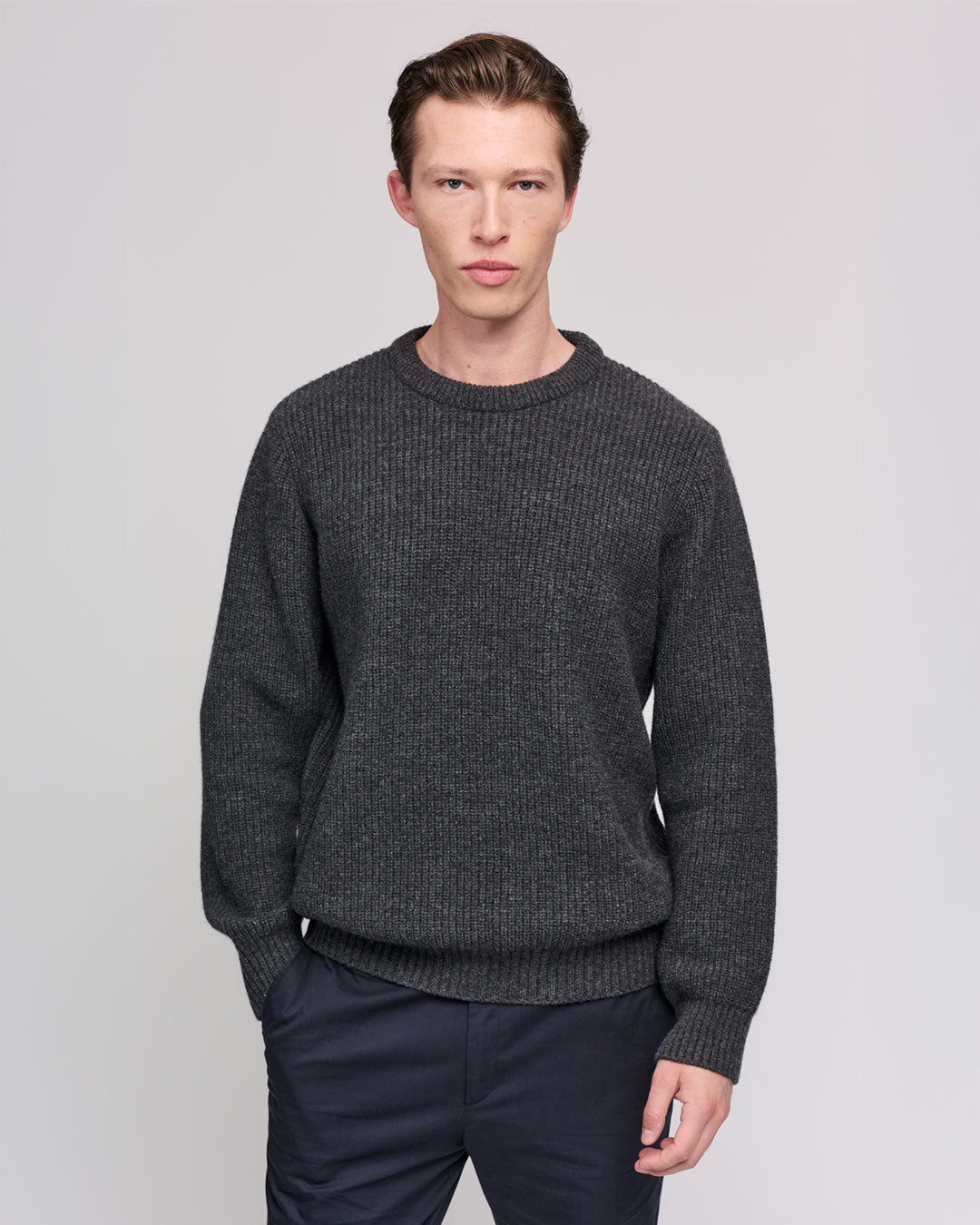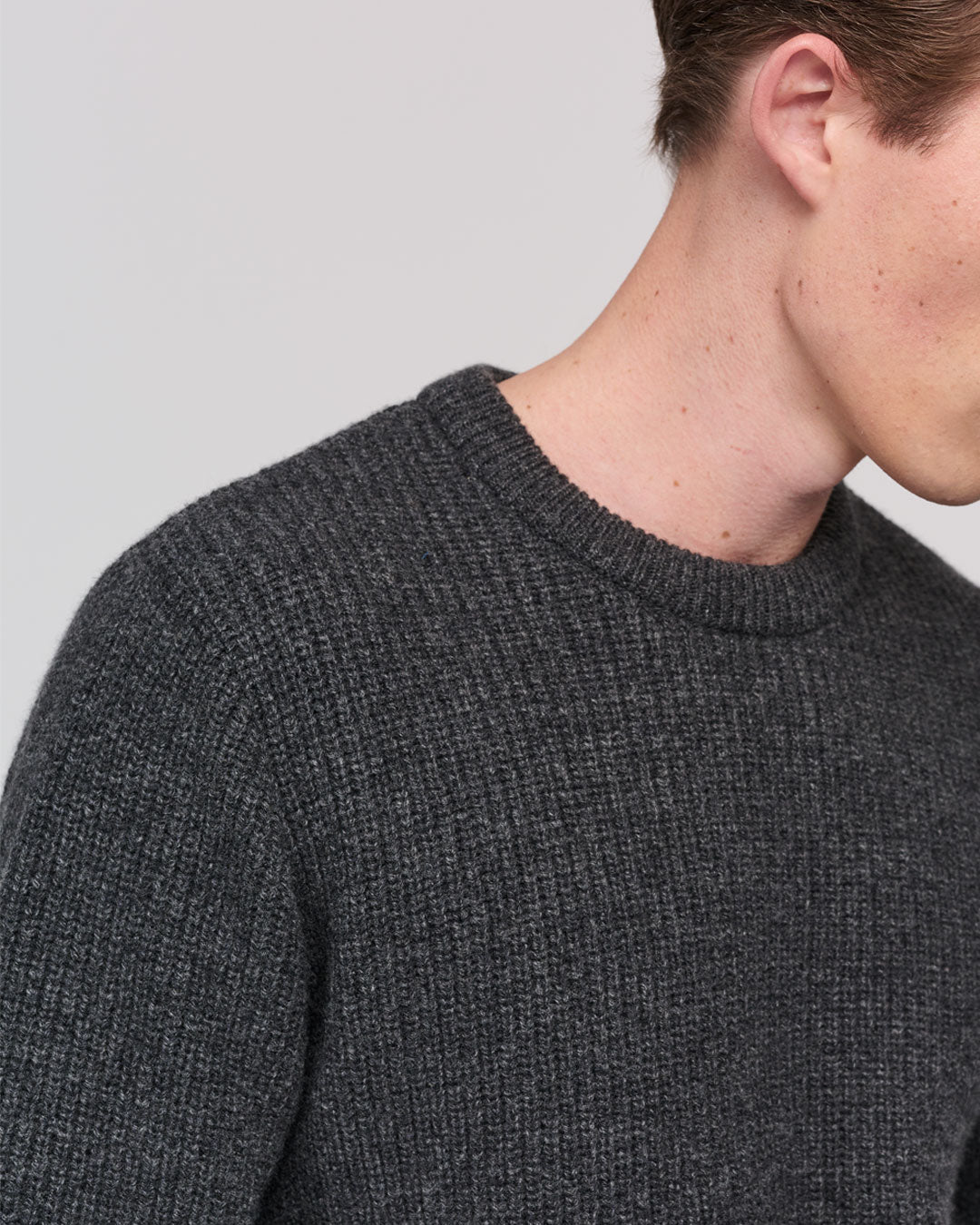 Super-Geelong-Wolle überzeugt mit kaschmirähnlicher Weichheit, die niemals kratzt und besonders feinen, sanften Fasern für ein geschmeidiges Tragegefühl. In diesem schwergewichtigen Strick sorgt sie für luxuriöse Wärme und Atmungsaktivität, sodass du auch an kühleren Tagen den ganzen Tag über bequem und warm bleibst.