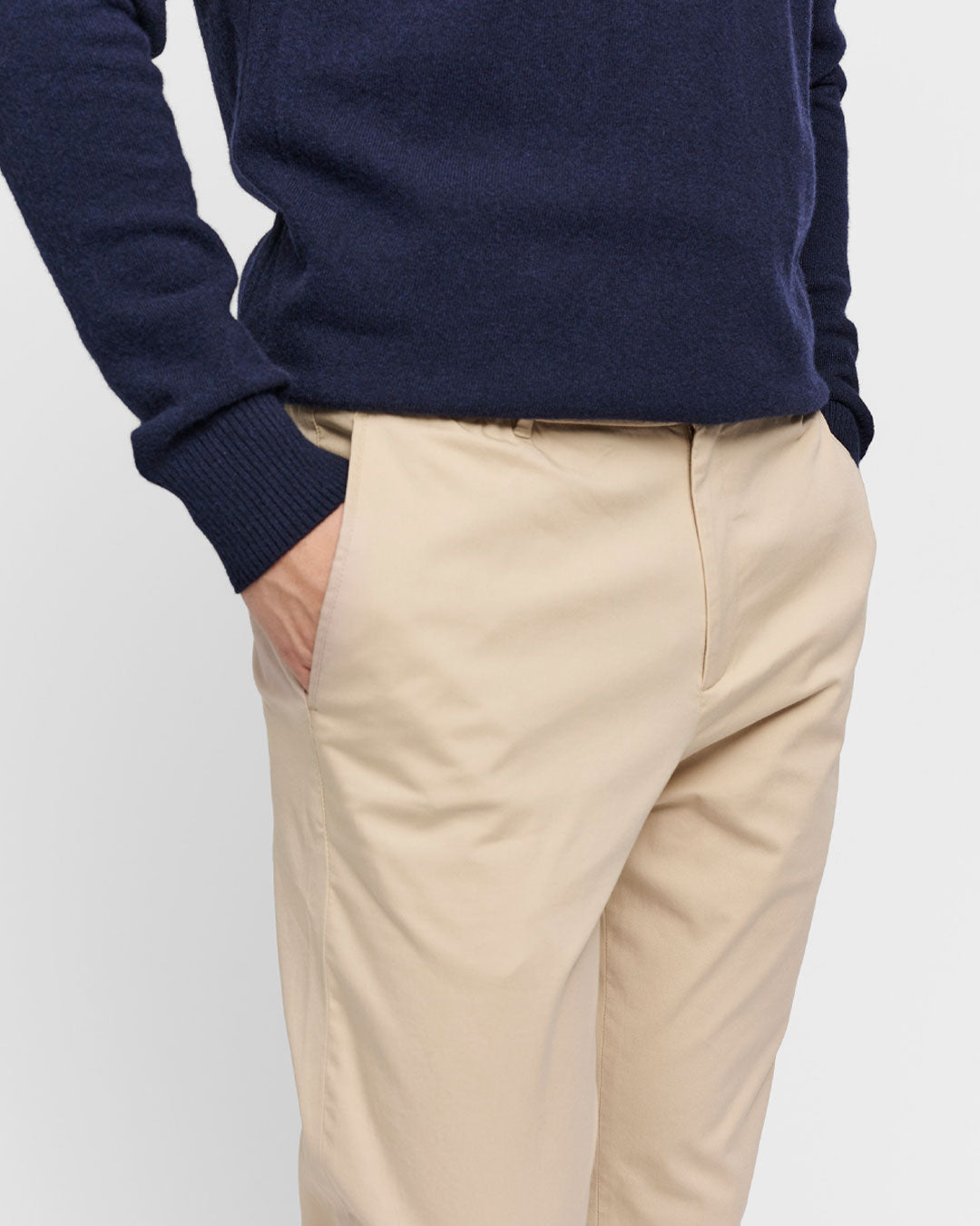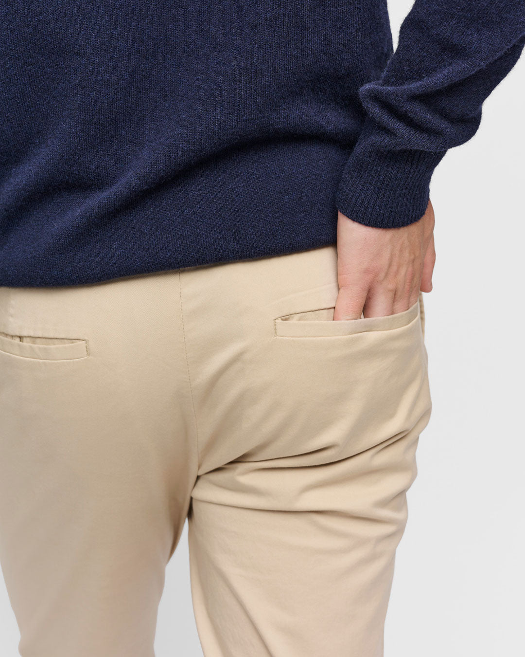 Durch den Mix aus nachhaltiger Bio-Baumwolle und italienischer Elastanfasern, kann die perfekte Chino Flüssigkeit optimal absorbieren und sorgt für eine kühlende Wirkung an warmen Tagen und isoliert Wärme an kalten Tagen.