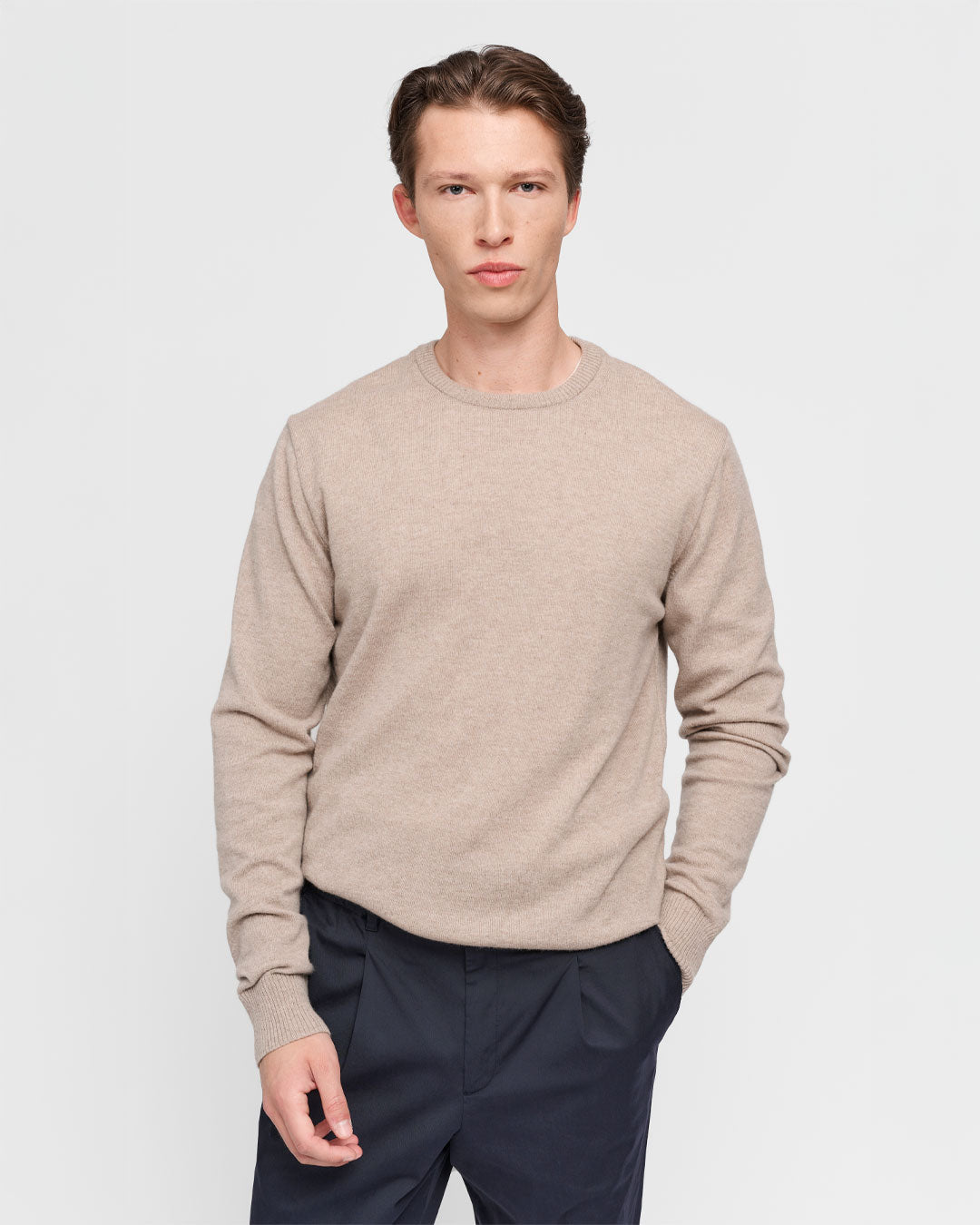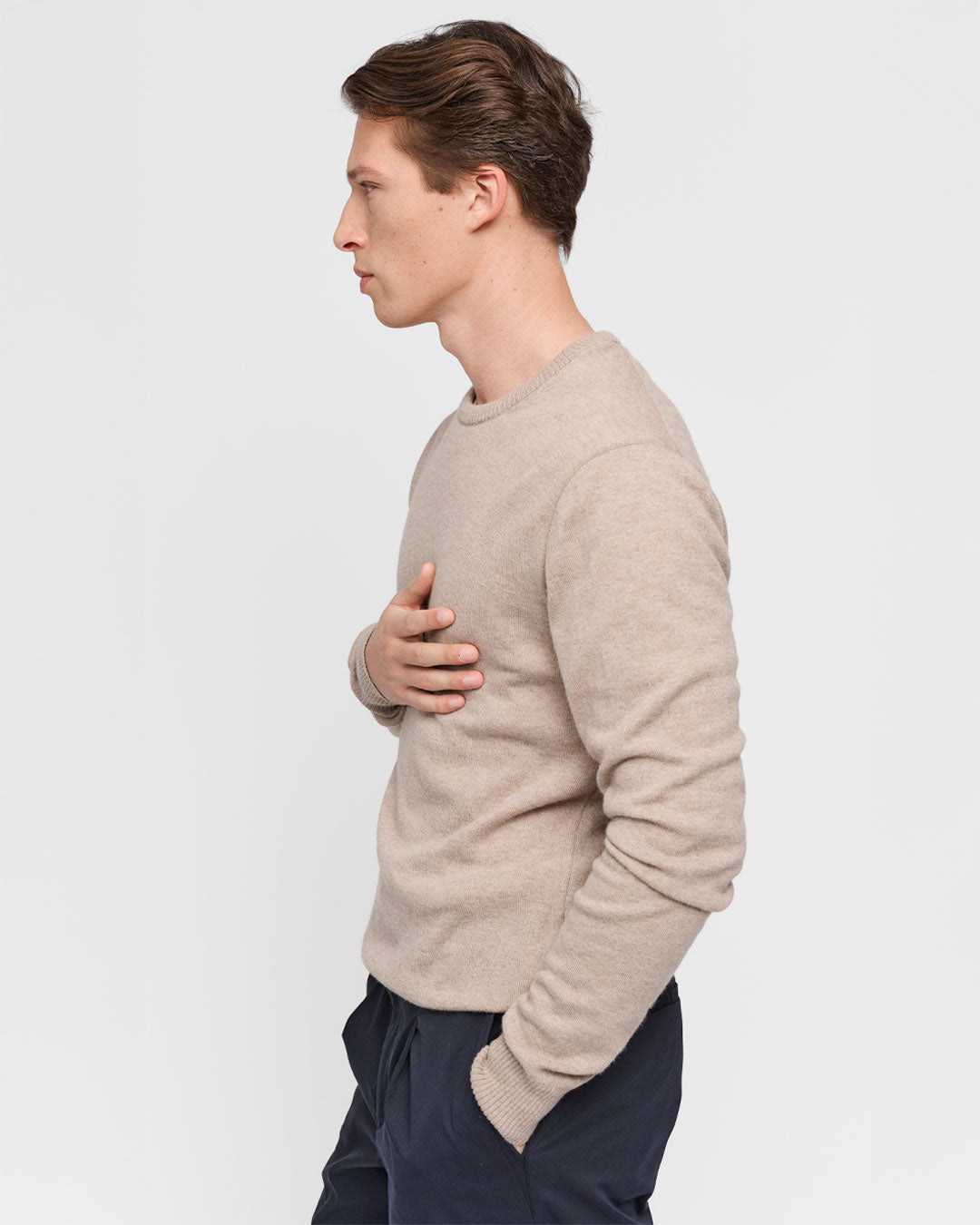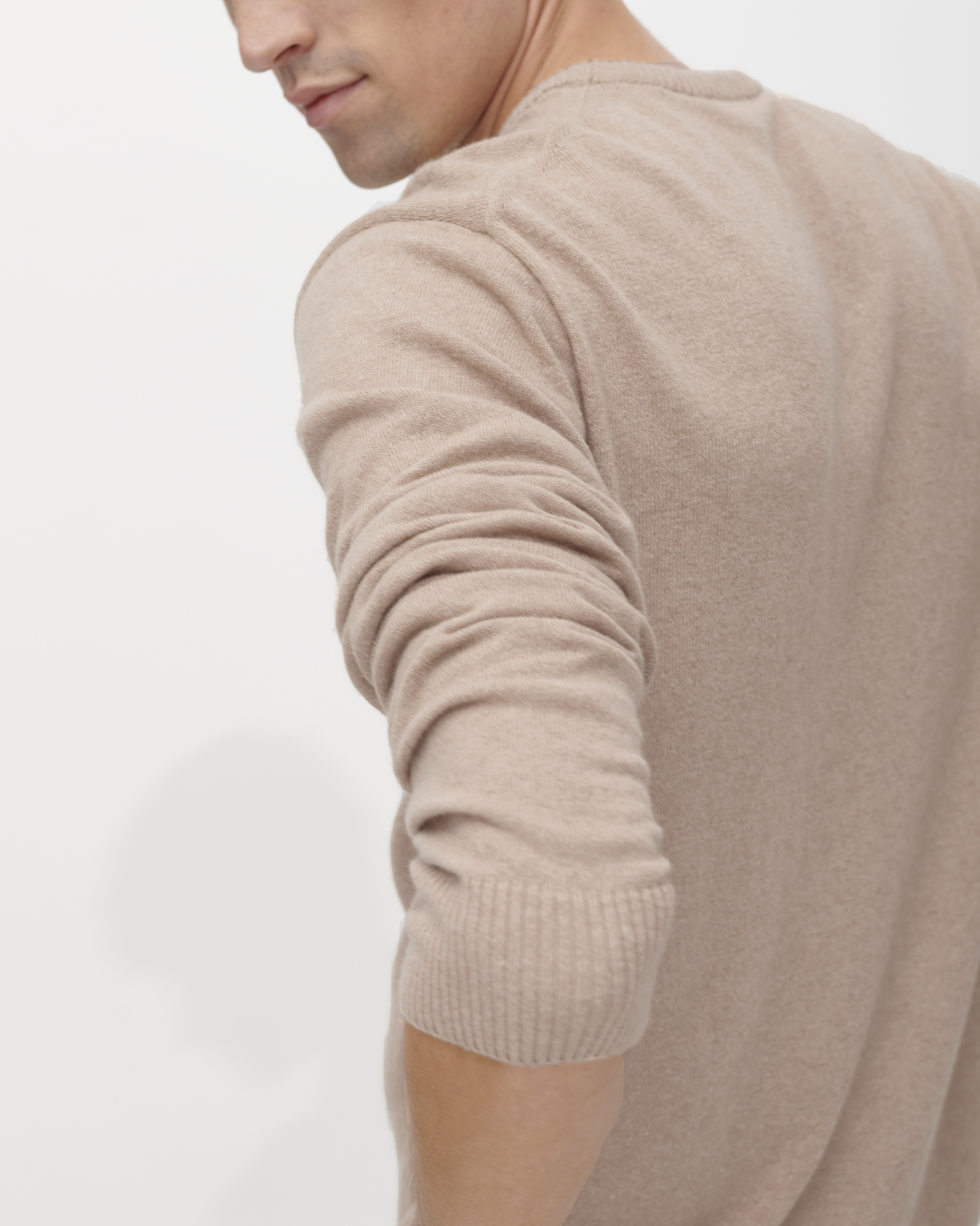 A cashmere-like softness that is never itchy. 'Super Geelong' wool is known for its fine fibers, which are gentle on the skin and offer an incredibly smooth feel. This wool is not only luxuriously soft but also naturally breathable, providing warmth without overheating, and ensuring comfort throughout the day.