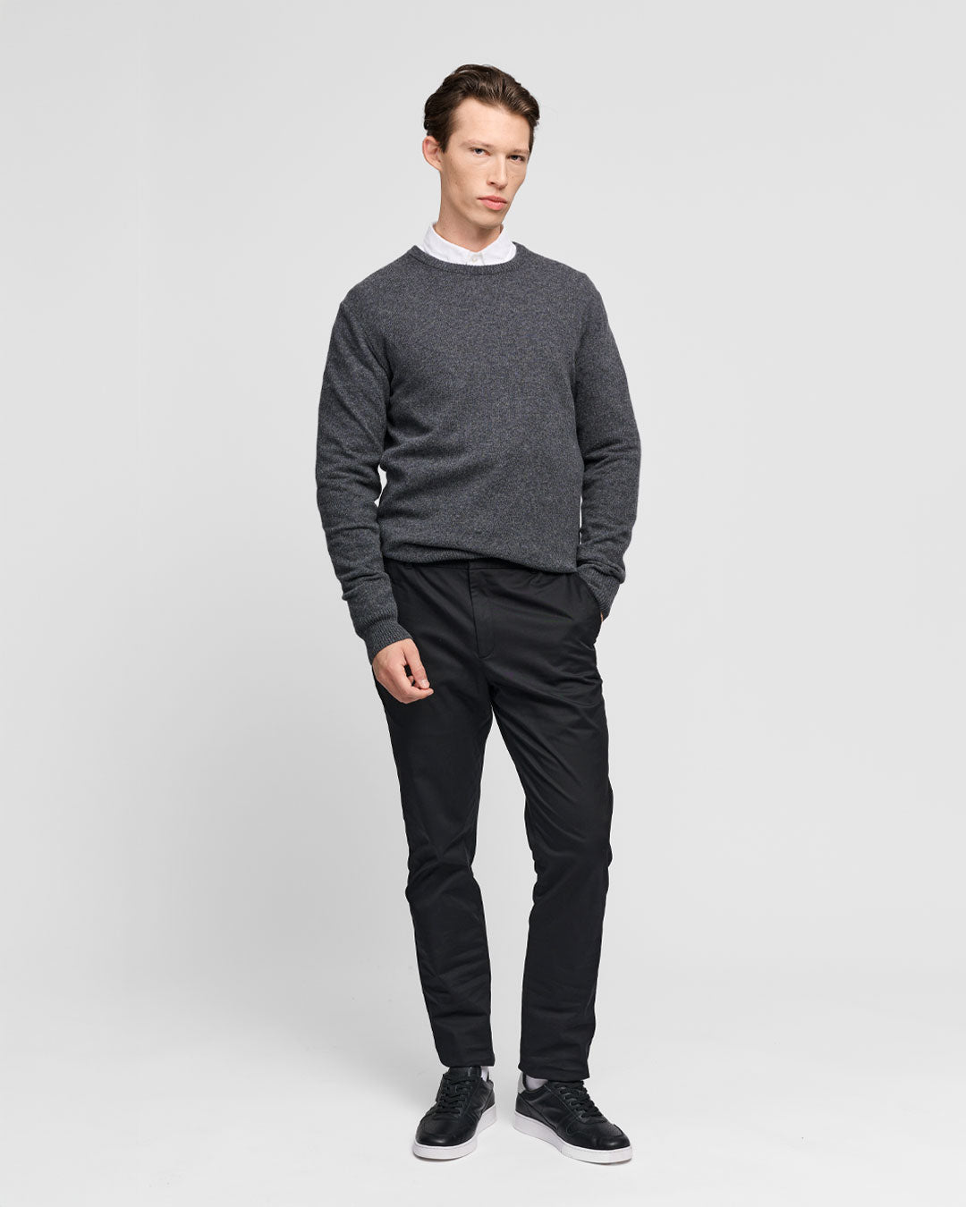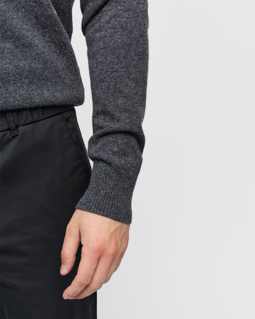 A cashmere-like softness that is never itchy. 'Super Geelong' wool is known for its fine fibers, which are gentle on the skin and offer an incredibly smooth feel. This wool is not only luxuriously soft but also naturally breathable, providing warmth without overheating, and ensuring comfort throughout the day.