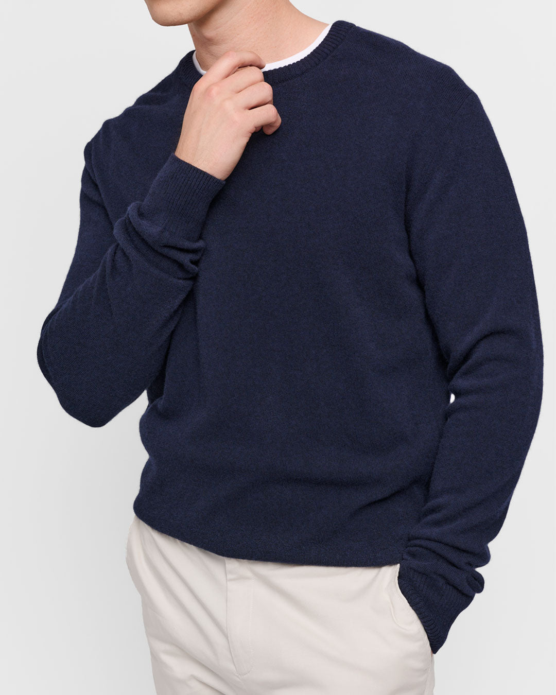 A cashmere-like softness that is never itchy. 'Super Geelong' wool is known for its fine fibers, which are gentle on the skin and offer an incredibly smooth feel. This wool is not only luxuriously soft but also naturally breathable, providing warmth without overheating, and ensuring comfort throughout the day.