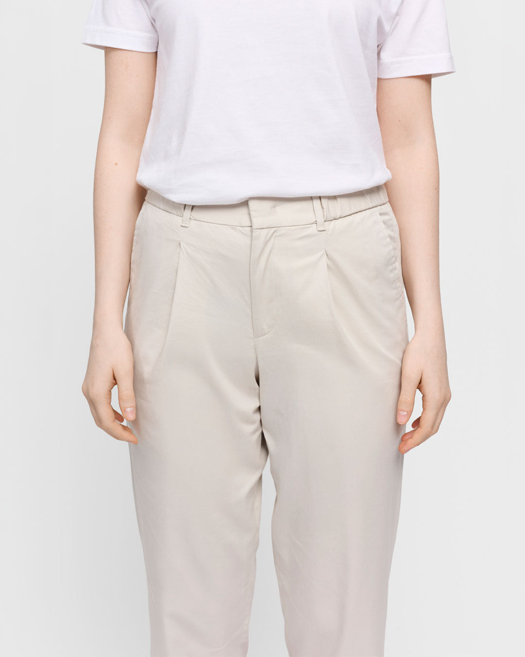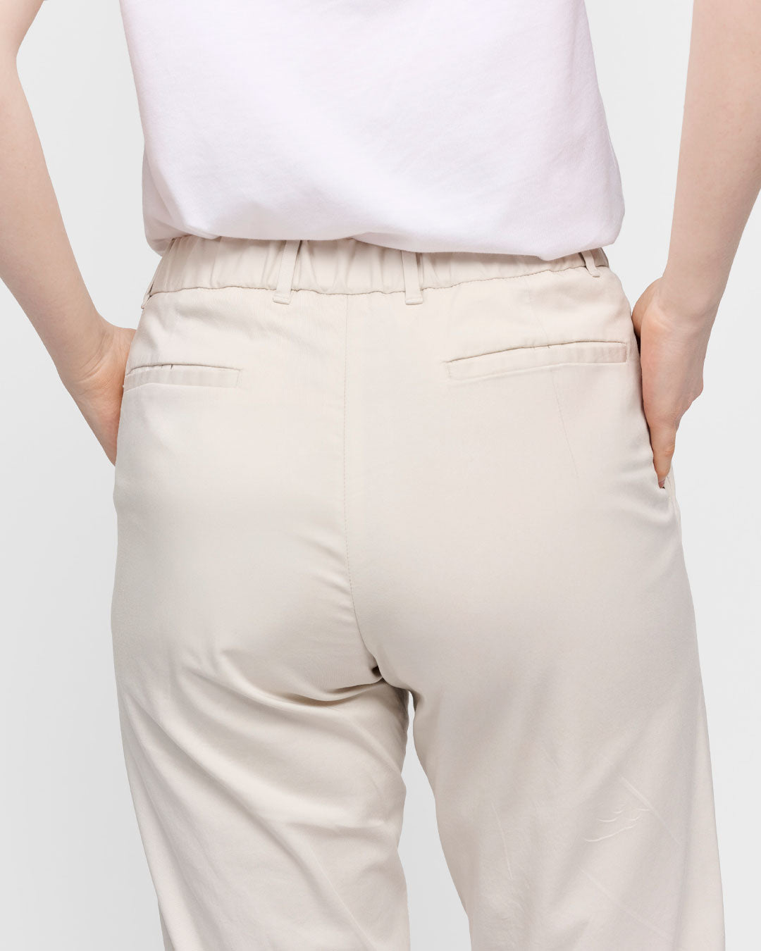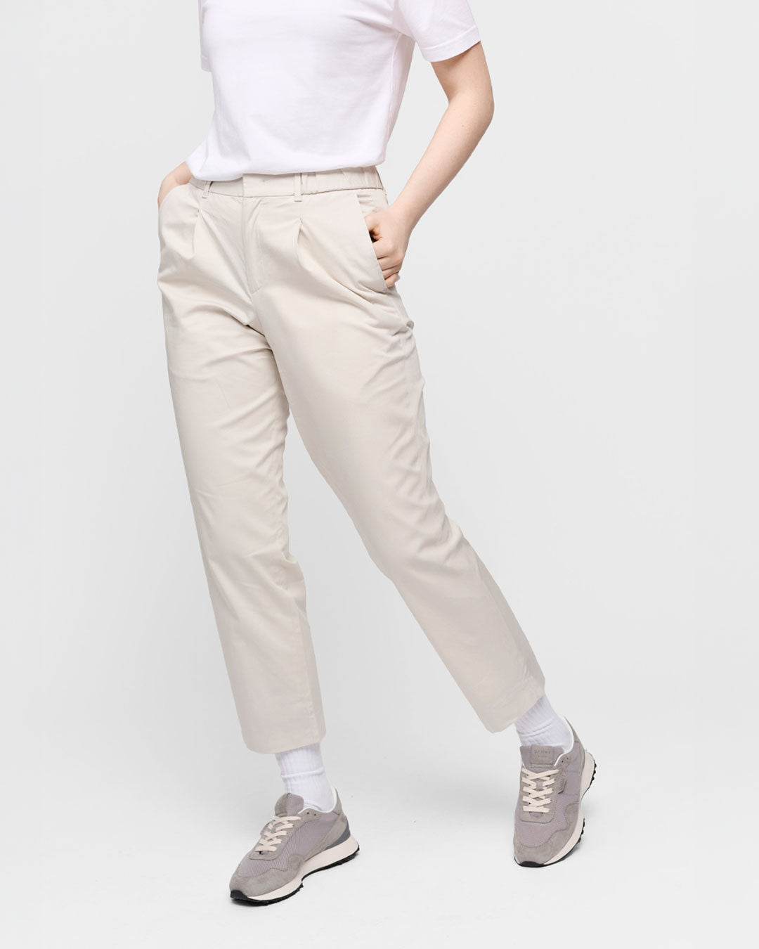 Mixing up organic cotton and fine elastane makes it possible to create a trouser of highest comfort and amazing flexibility. On top of that the thermo-regulating characteristic of the fibre elastane, makes the perfect chino suitable for warm and cold days.