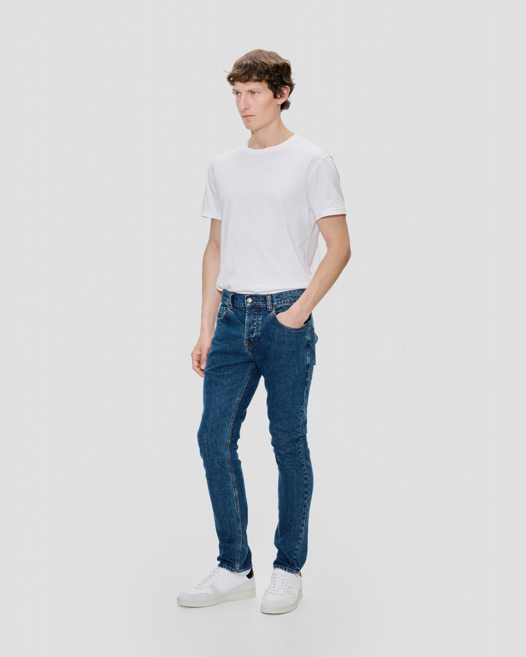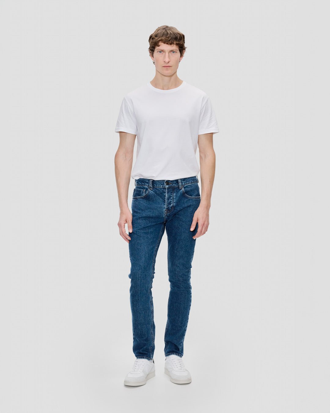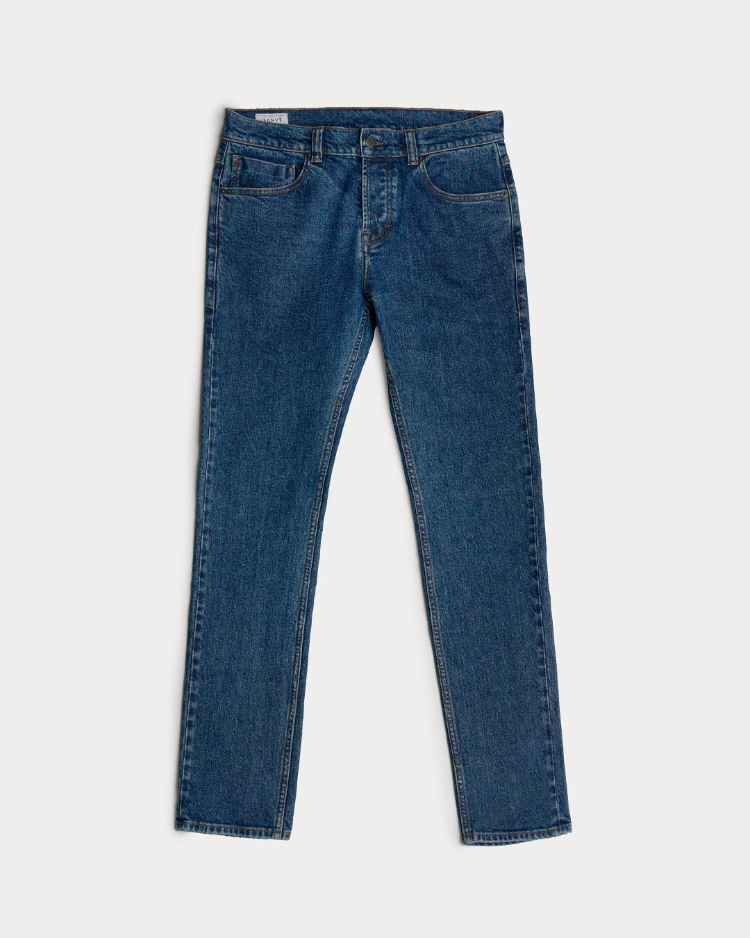 The slimmest silhouette in the SANVT denim collection. A close-to-body fit with clean proportions, designed to fall naturally on shoes without feeling restrictive.