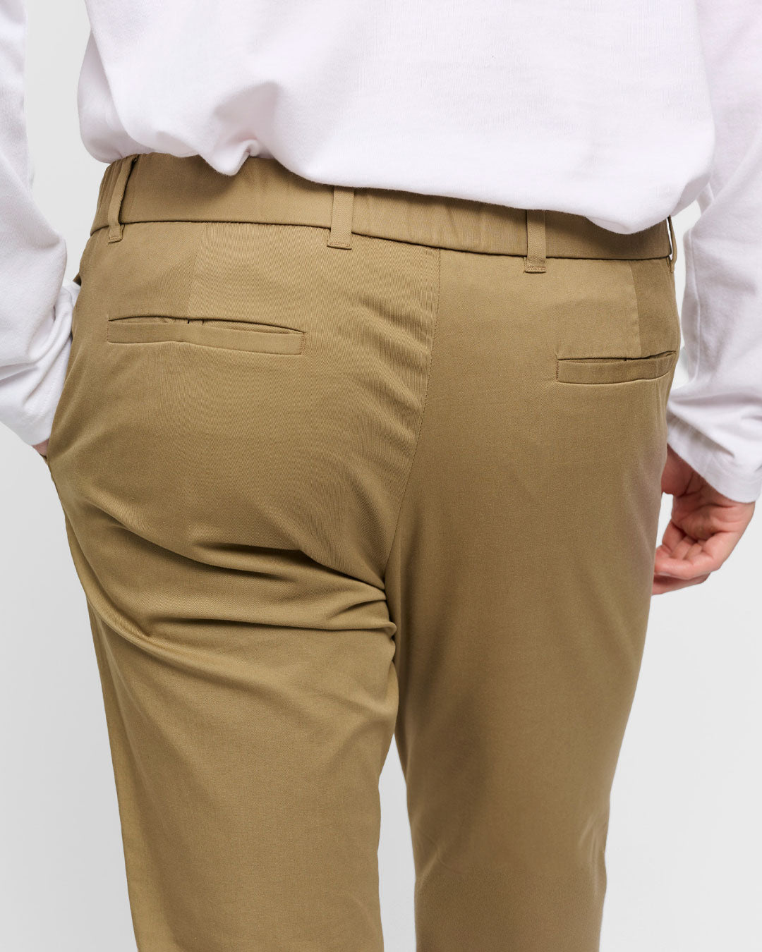 Invisible elastic inserts on the waistband guarantee extra flexibility. Unlike conventional trousers, the waist size of the Smart Chino stretches up to six centimetres.